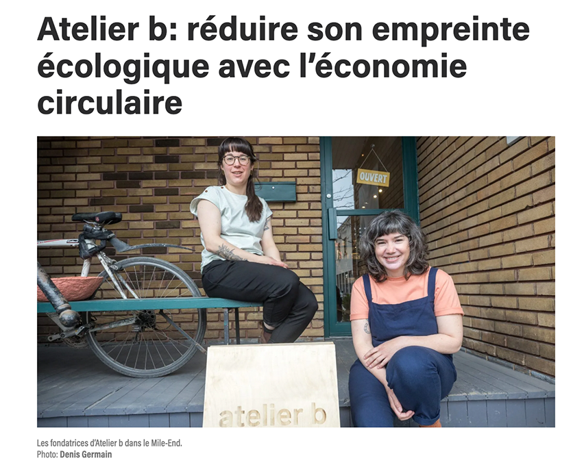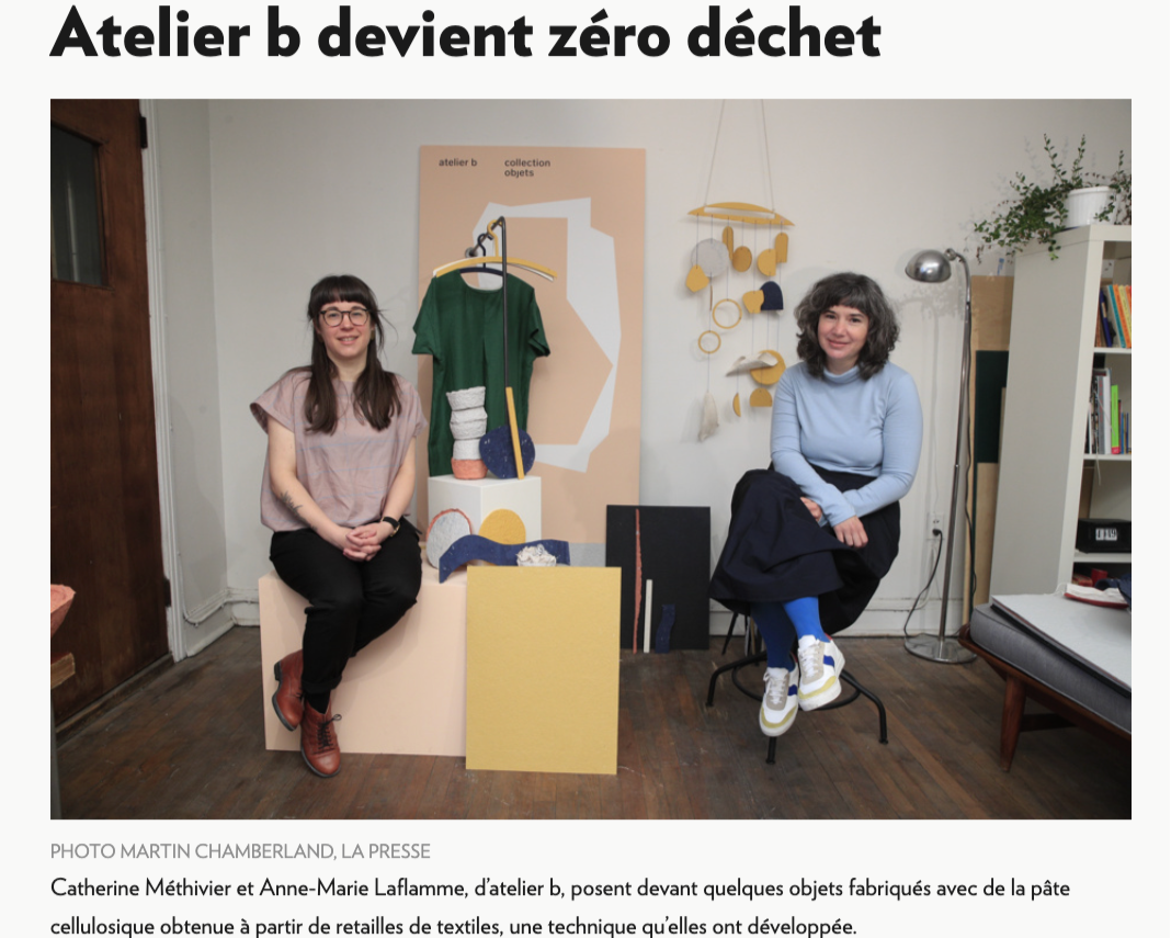 Chaque pièce atelier b a été pensée par Anne-Marie et Catherine pour être facile à porter et devenir essentielle au quotidien. Leur atelier de Montréal est un véritable laboratoire de recherche et de création en développement durable où l'amitié, la fabrication locale, les fibres naturelles et une production manufacturière zéro déchet sont mises de l'avant. Pour celleux qui aiment les histoires et les processus derrière les créations qui habitent leur quotidien.