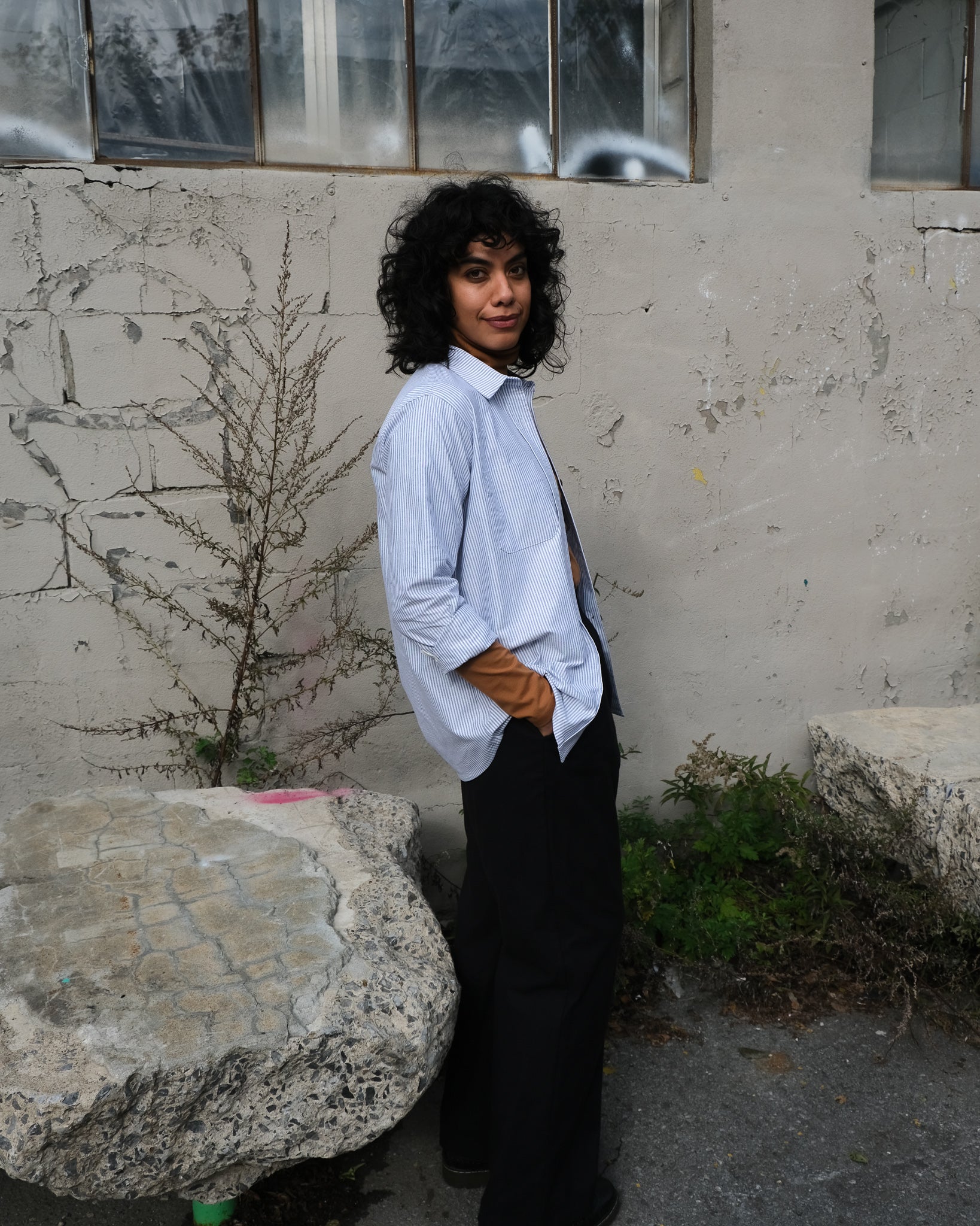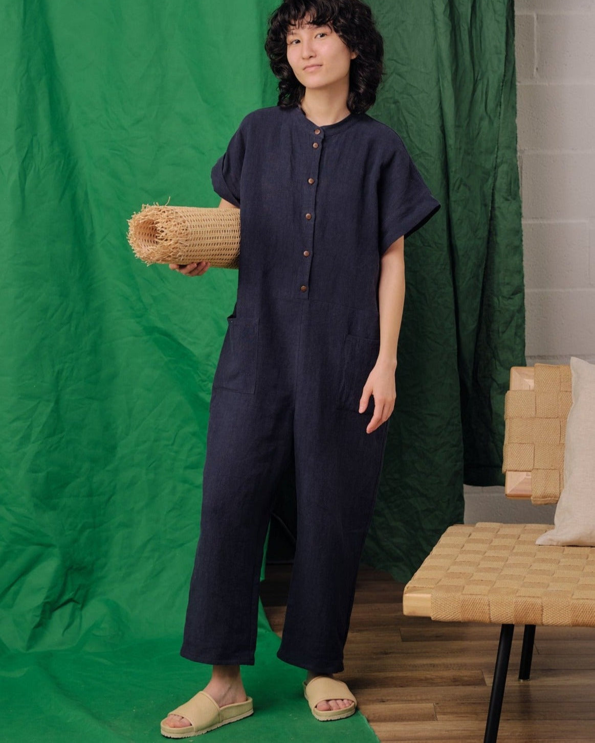 lin latte rayures dungaree lin cuivre lin bleu marin + 1 de plus