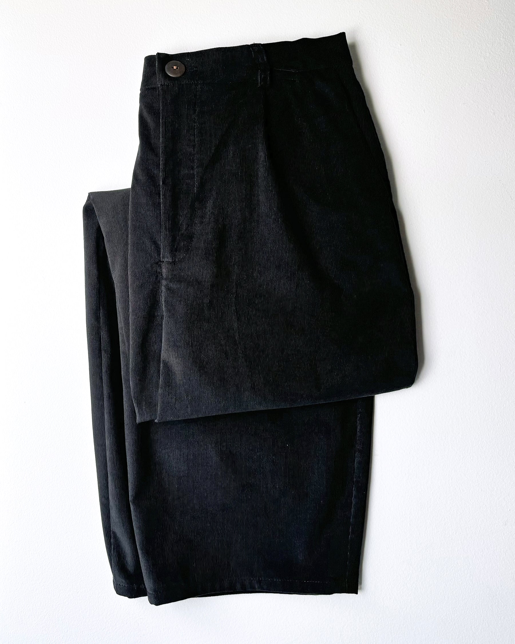 Le pantalon ballon No2592w se démarque par sa coupe ample qui suit la courbe de la jambe. Une ampleur décontractée au niveau des hanches et des cuisses et qui se resserre légèrement à la cheville. Cette version est confectionnée dans un fin velours côtelé noir.