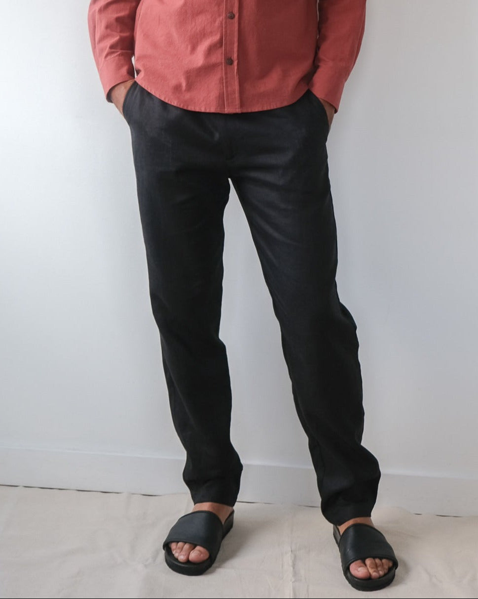 Linen trousers No6028m, black linen size 40