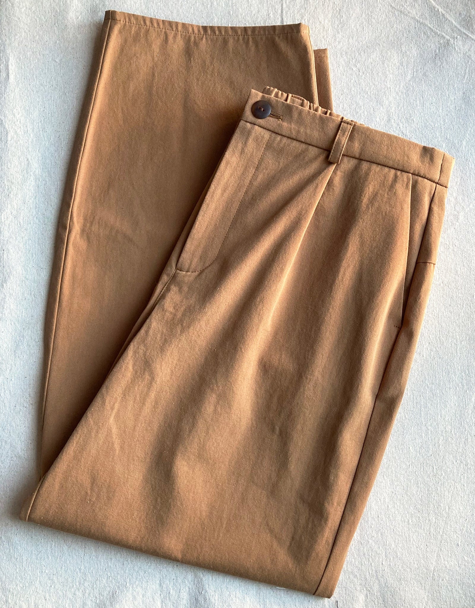 Our No2492w balloon trousers feature a tailored leg that follows the curve of the leg. The fit is relaxed at the hip and thigh, then tapers slightly at the ankle. This version is made using a heavy certified organic cotton. A crisp and structured material.