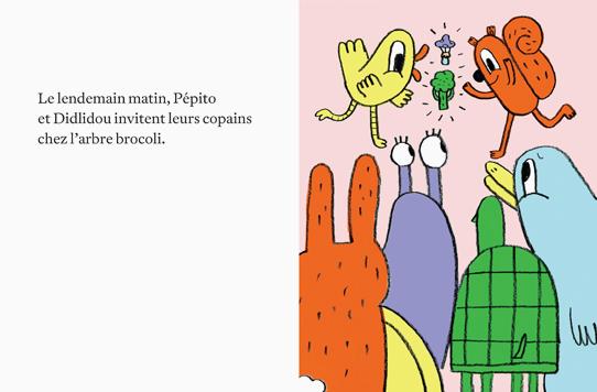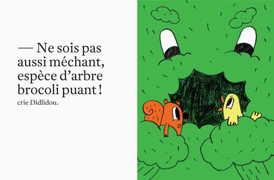 It is a beautiful day! Pépito and Didlidou go to pick mushrooms. Pépito suggests going to the broccoli tree. "No way! Didlidou grumbles, that tree smells like old socks! Ugh!"