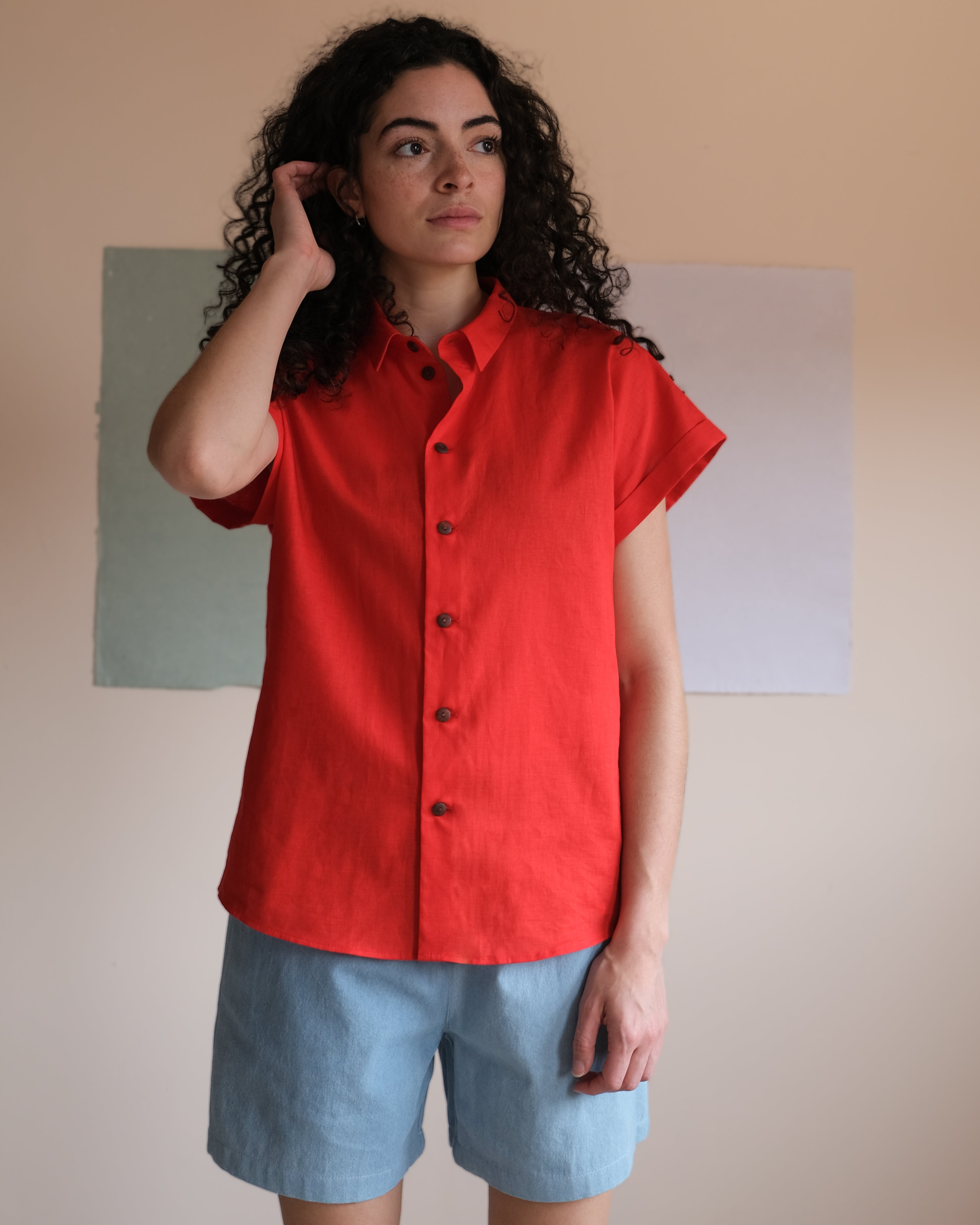 Cotton shirt No2488m, brick