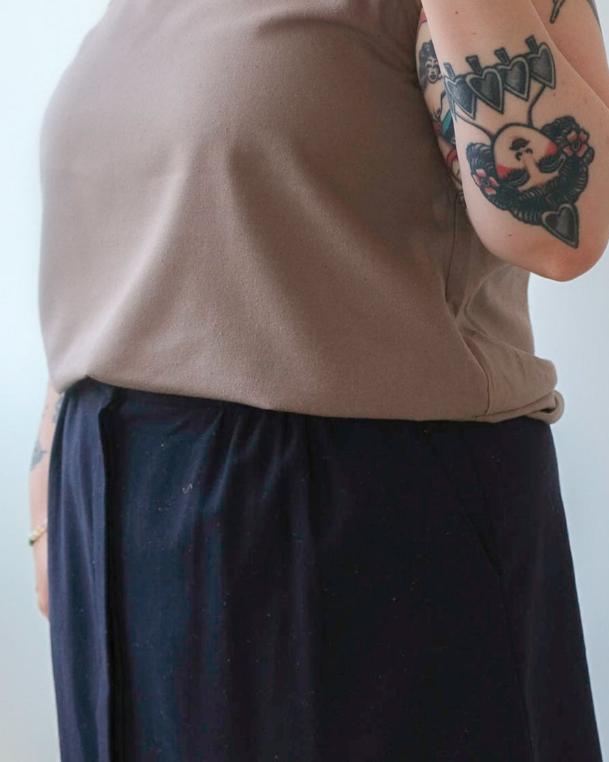 If the color or size you are looking for is no longer available, do not hesitate to write to us. We have a fabric inventory at the workshop that allows us to manufacture any of our models, whether it is this one or a piece from a past collection. Simply write to us at info@atelier-b.ca with the model you are looking for so we can suggest fabrics and colors! Orders sewn at the workshop are at the regular price (if the model is on sale, the discount does not apply to a piece sewn to order). Production time can vary from 4 to 6 weeks. Items from past collections sewn to order have a 10% surcharge. We can also make alterations to the pattern, in which case there will be an additional charge depending on the situation which can vary from 10 to 20%.