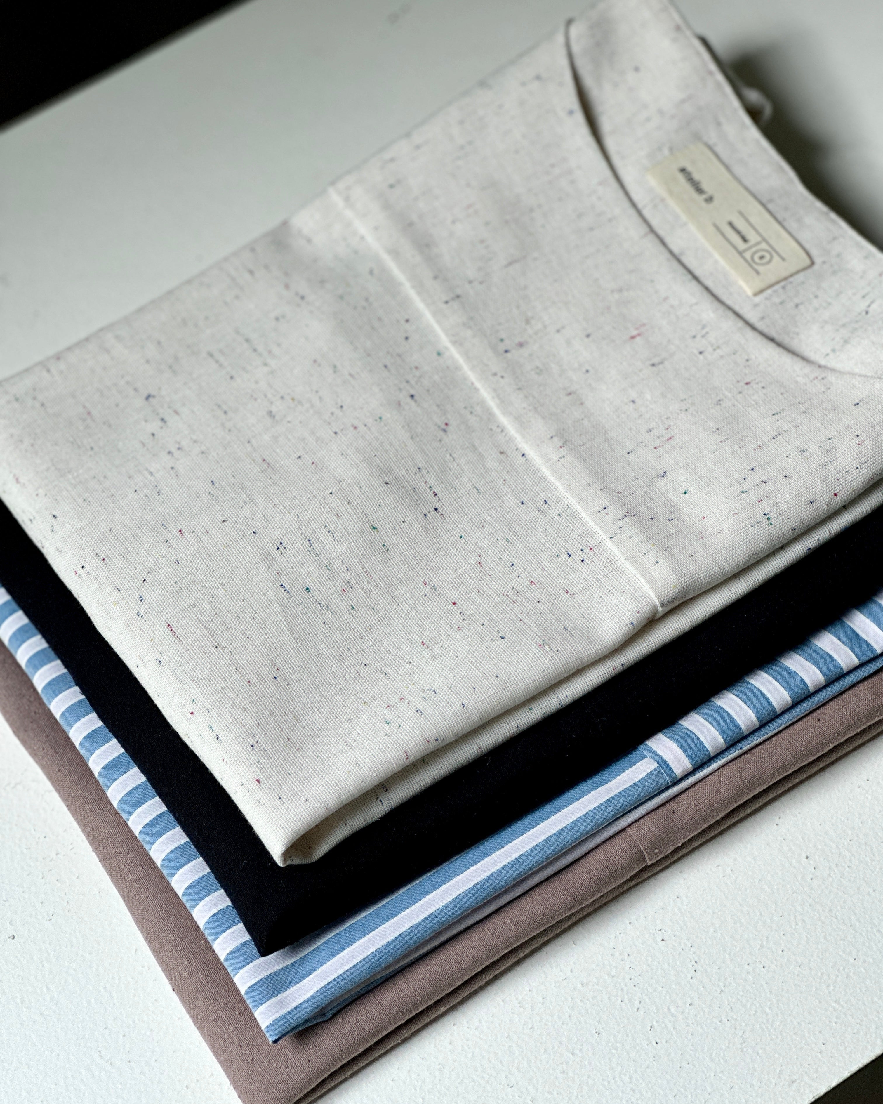 For the past 12 years, we've been experimenting and refining our processes to work with the best natural fibers available. We select our materials for their durability, comfort, aesthetic properties, and the conditions in which they were produced. We prioritize suppliers located near our workshop. Many of our jerseys and knits are made in Canada, while some woven fabrics come from the United States. For more specialized materials, we work with Japan and certain European countries (mainly Italy and northern countries). It is essential for us to ensure that workers' conditions are fair, and the best way to be sure is to choose countries that have a charter of individual rights that resembles ours!