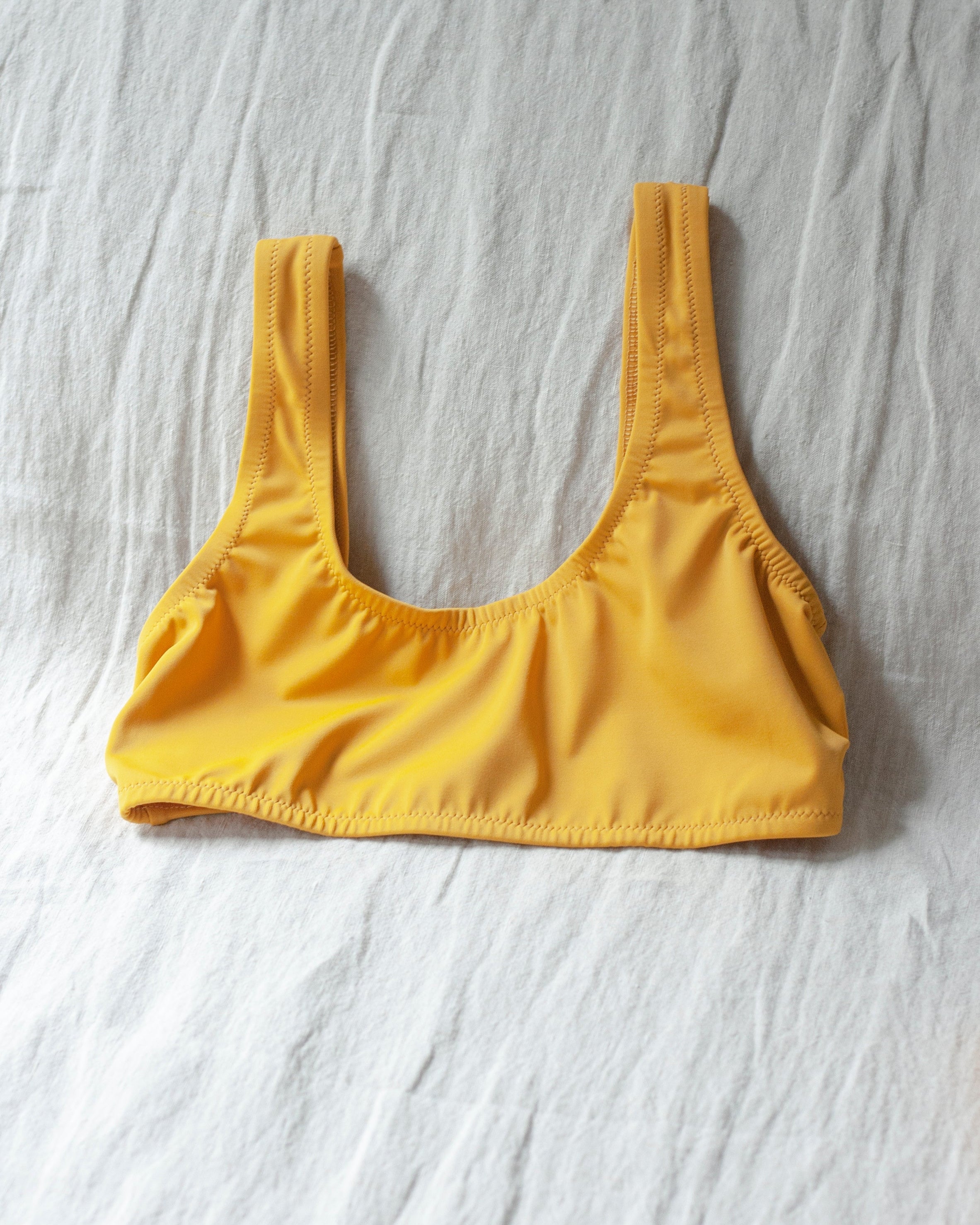 A full coverage swimsuit top with wide straps and round neckline. Fully lined. To see the matching bottom, click here.