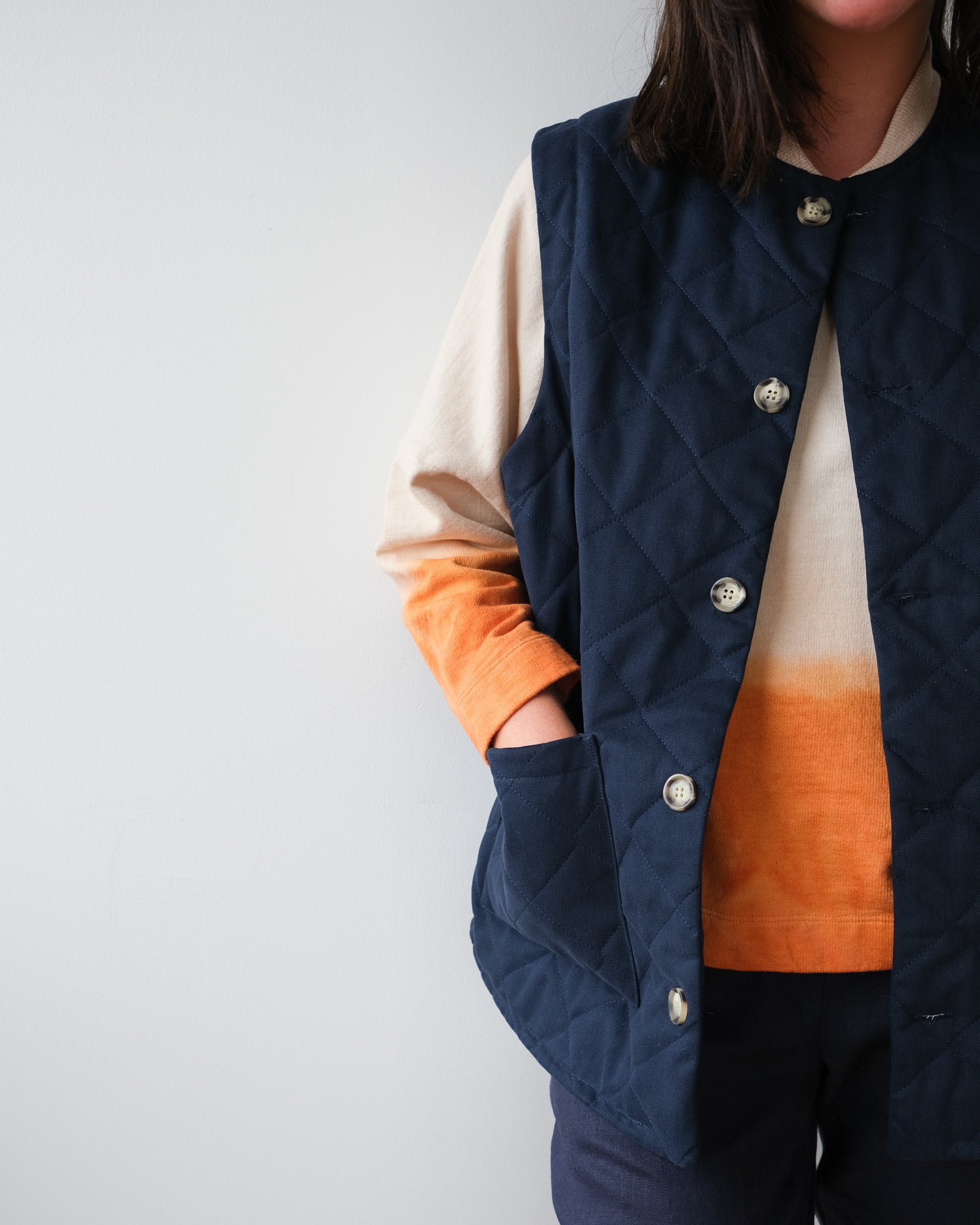 For the past 12 years, we've been experimenting and refining our processes to work with the best natural fibers available. We select our materials for their durability, comfort, aesthetic properties, and the conditions in which they were produced. We prioritize suppliers located near our workshop. Many of our jerseys and knits are made in Canada, while some woven fabrics come from the United States. For more specialized materials, we work with Japan and certain European countries (mainly Italy and northern countries). It is essential for us to ensure that workers' conditions are fair, and the best way to be sure is to choose countries that have a charter of individual rights that resembles ours!