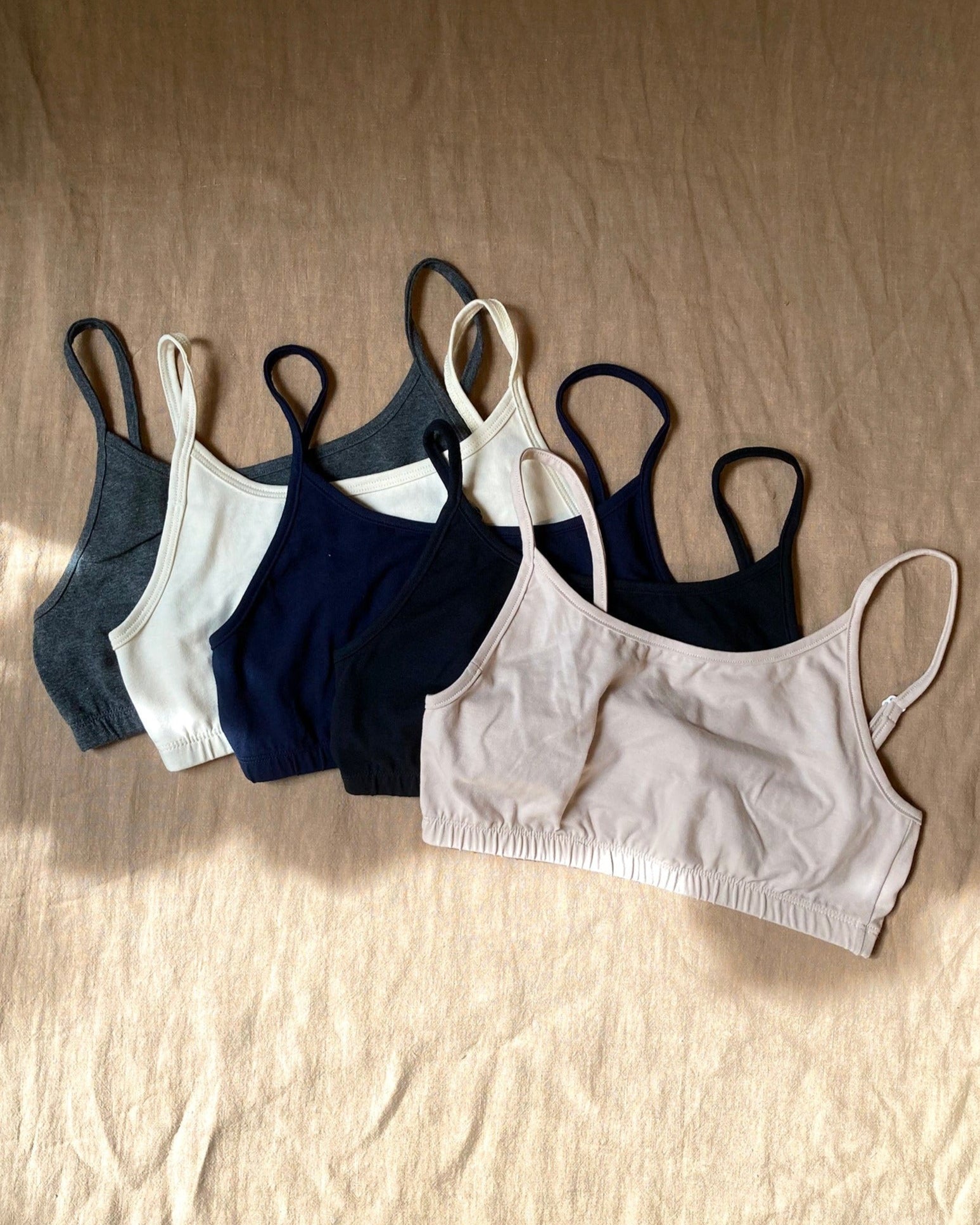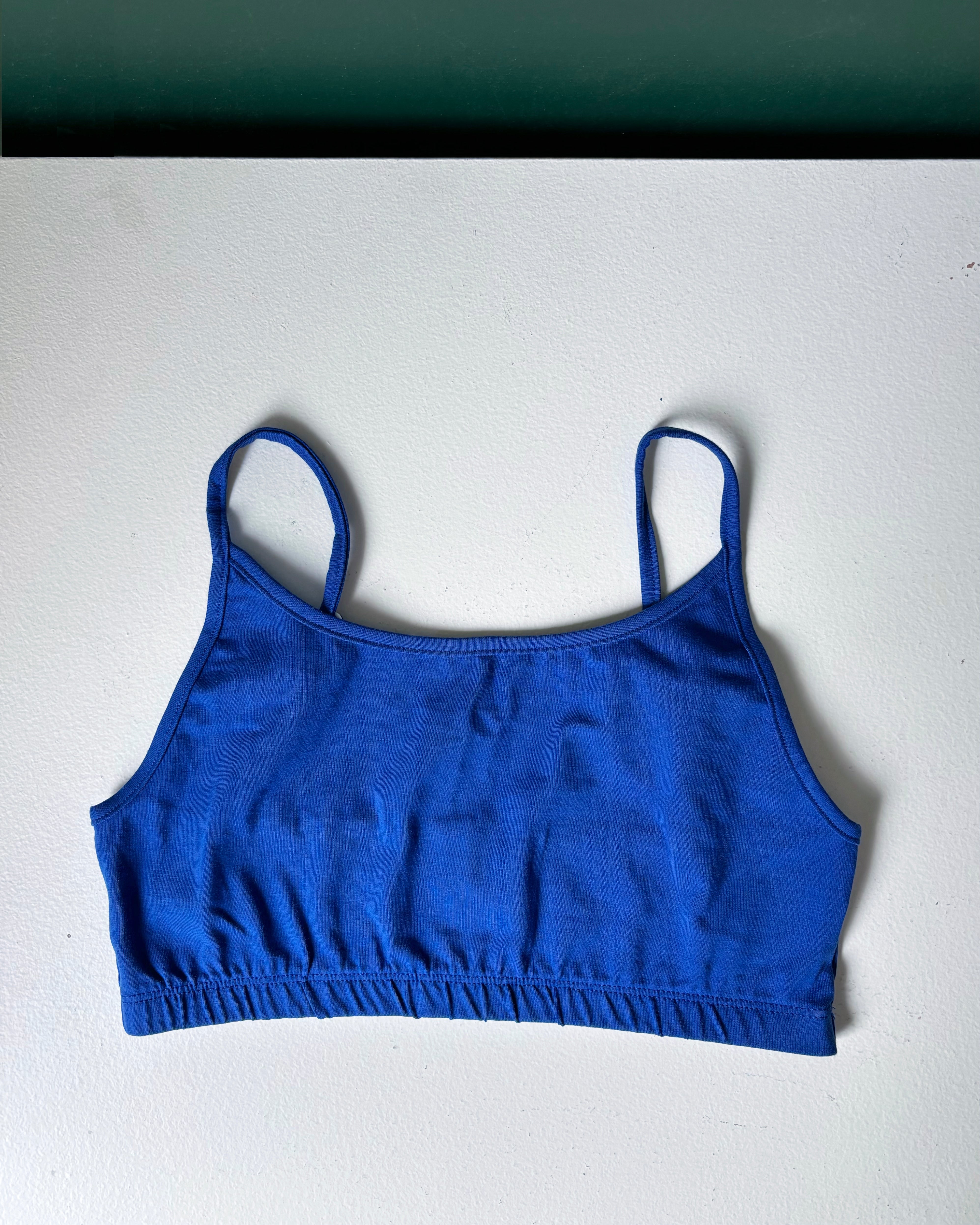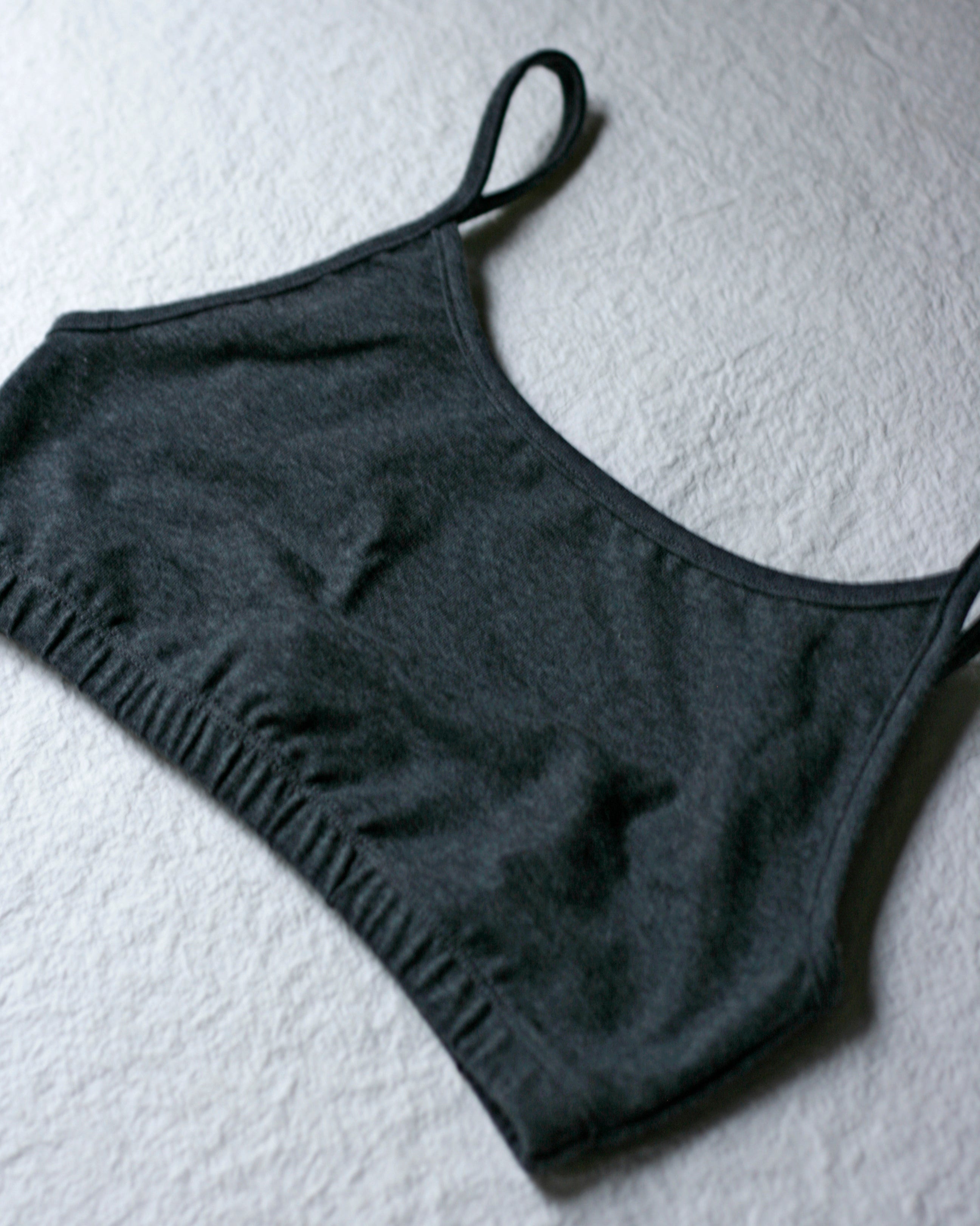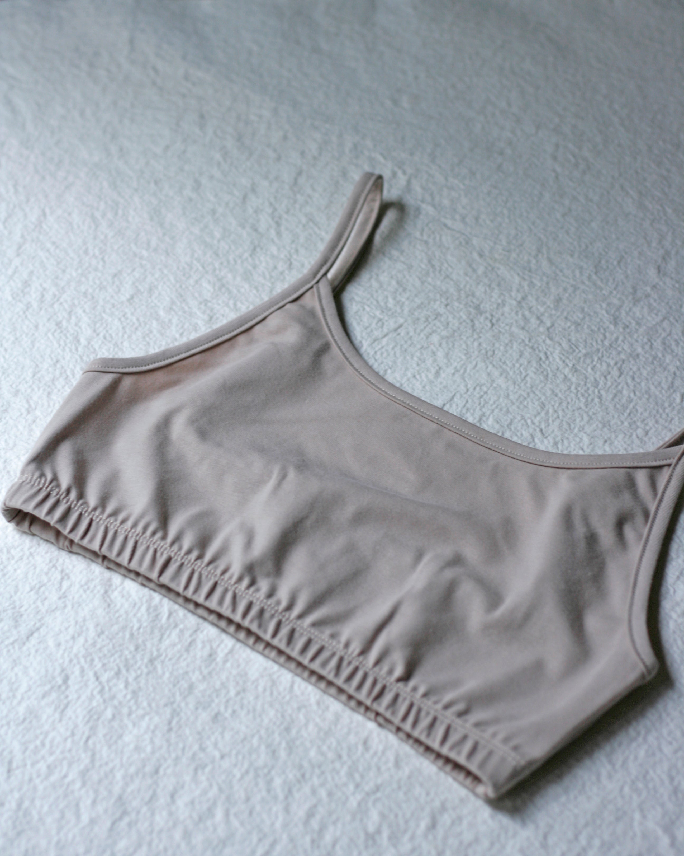 A comfortable cotton underwear with elastic at the bust and adjustable straps. This version is longer and offers more coverage, compared with our bralette no6063w.
