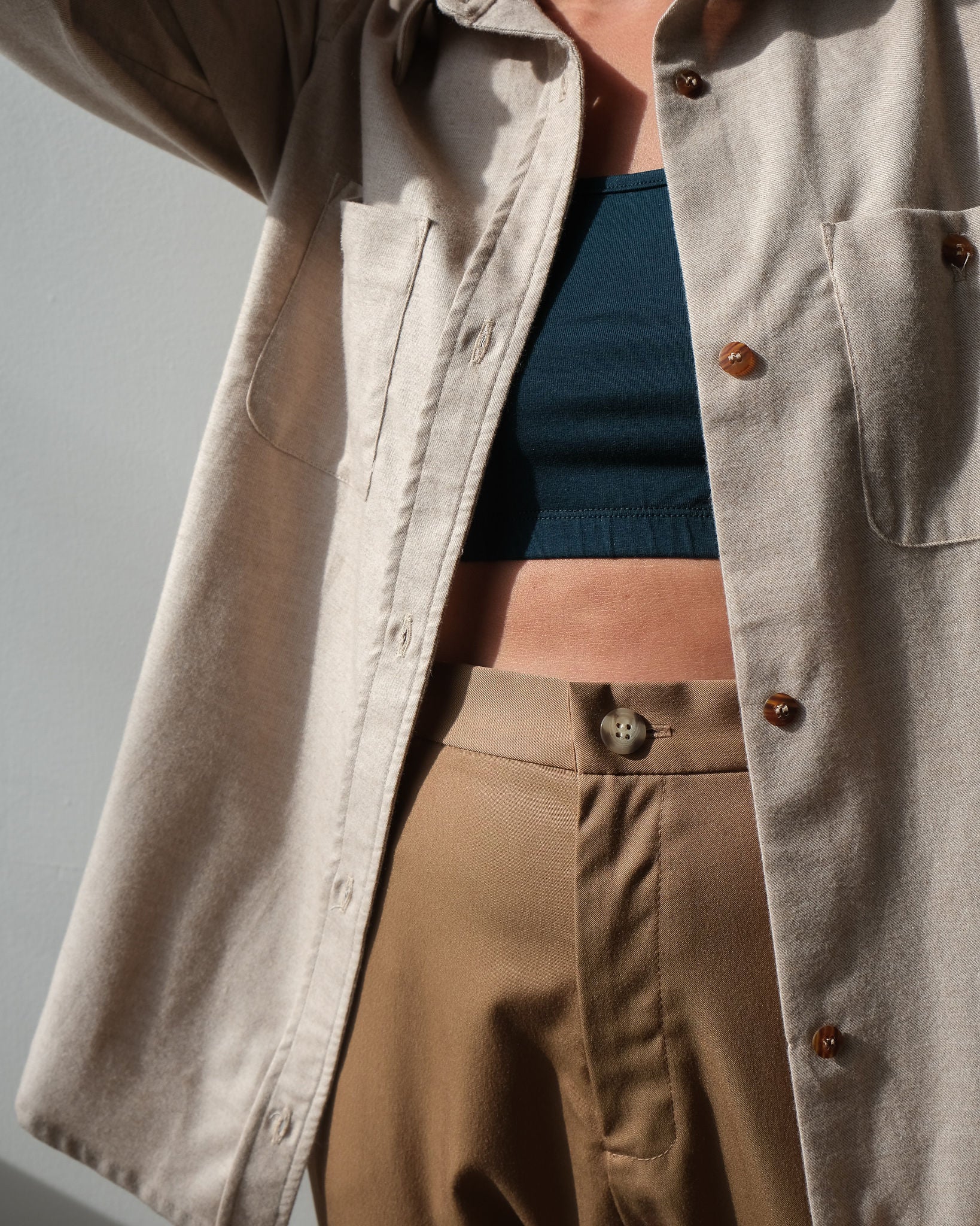 For the past 12 years, we've been experimenting and refining our processes to work with the best natural fibers available. We select our materials for their durability, comfort, aesthetic properties, and the conditions in which they were produced. We prioritize suppliers located near our workshop. Many of our jerseys and knits are made in Canada, while some woven fabrics come from the United States. For more specialized materials, we work with Japan and certain European countries (mainly Italy and northern countries). It is essential for us to ensure that workers' conditions are fair, and the best way to be sure is to choose countries that have a charter of individual rights that resembles ours!