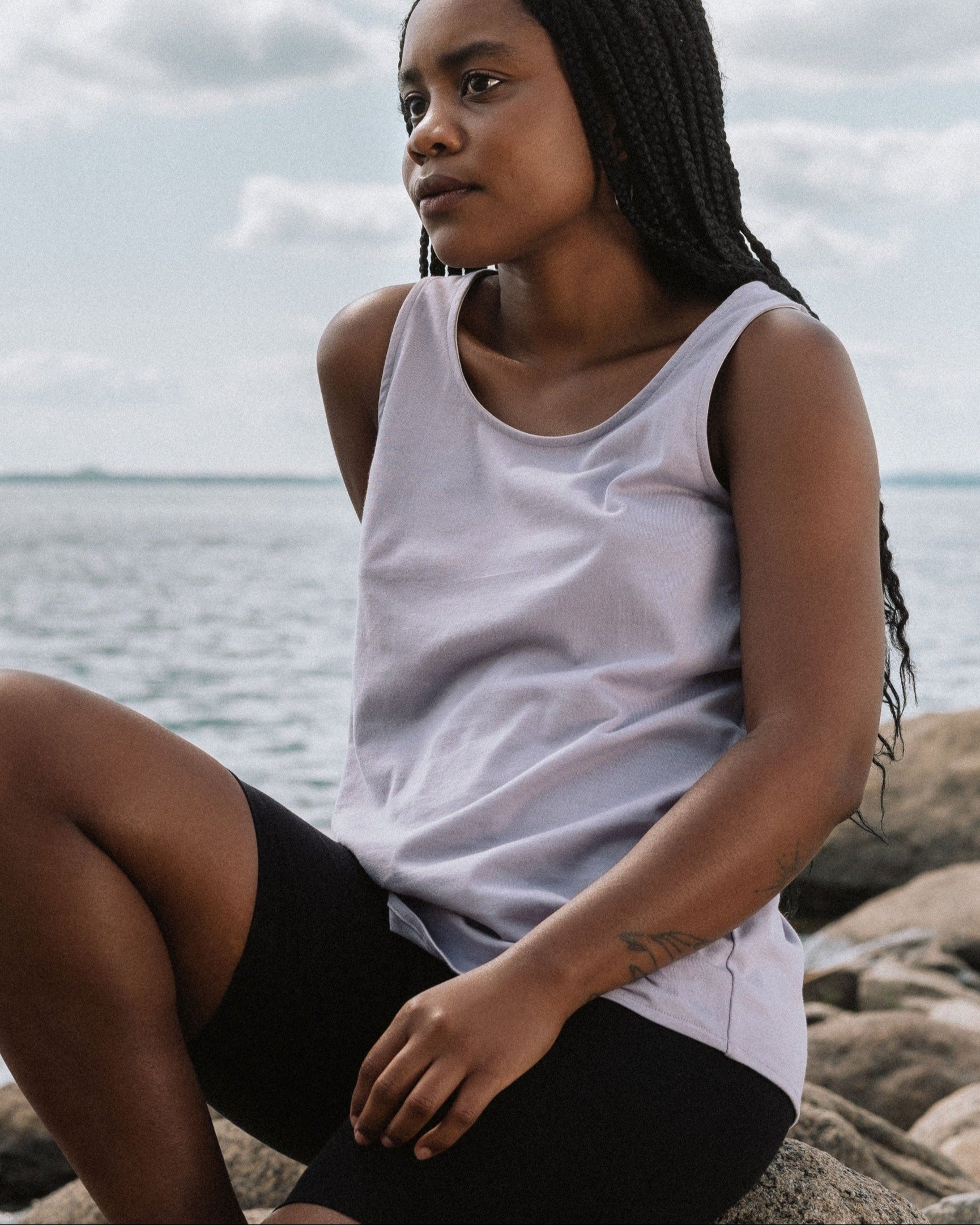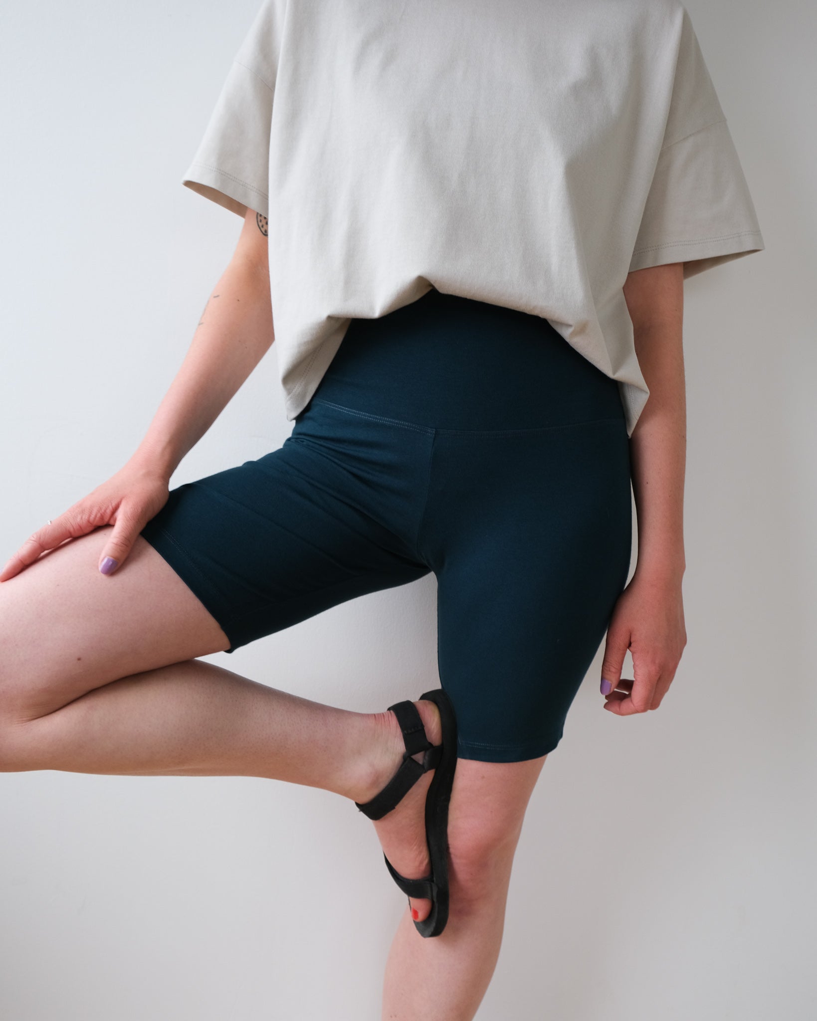 Unisex shorts made from the same material as our underwear. Our organic cotton knit is durable and comfortable. We like to wear the shorts with a loose top, as pyjamas or under our clothes to move more easily, ride a bike or protect our thighs from friction. Very high waist. The waistband is wide with an elastic band to make sure the shorts stay in place without constricting us.