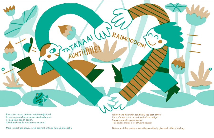 Raimon and his auntie would love to see each other, but they live on opposite shores of the ocean. How will they finally give each other a big hug? Find out in this new issue of Grilled Cheese. But wait, there’s more! You will also craft 12 playing cards to build paths with, look right through the pages to uncover what is hidden, and learn all kinds of things about crossings. Have fun reading!