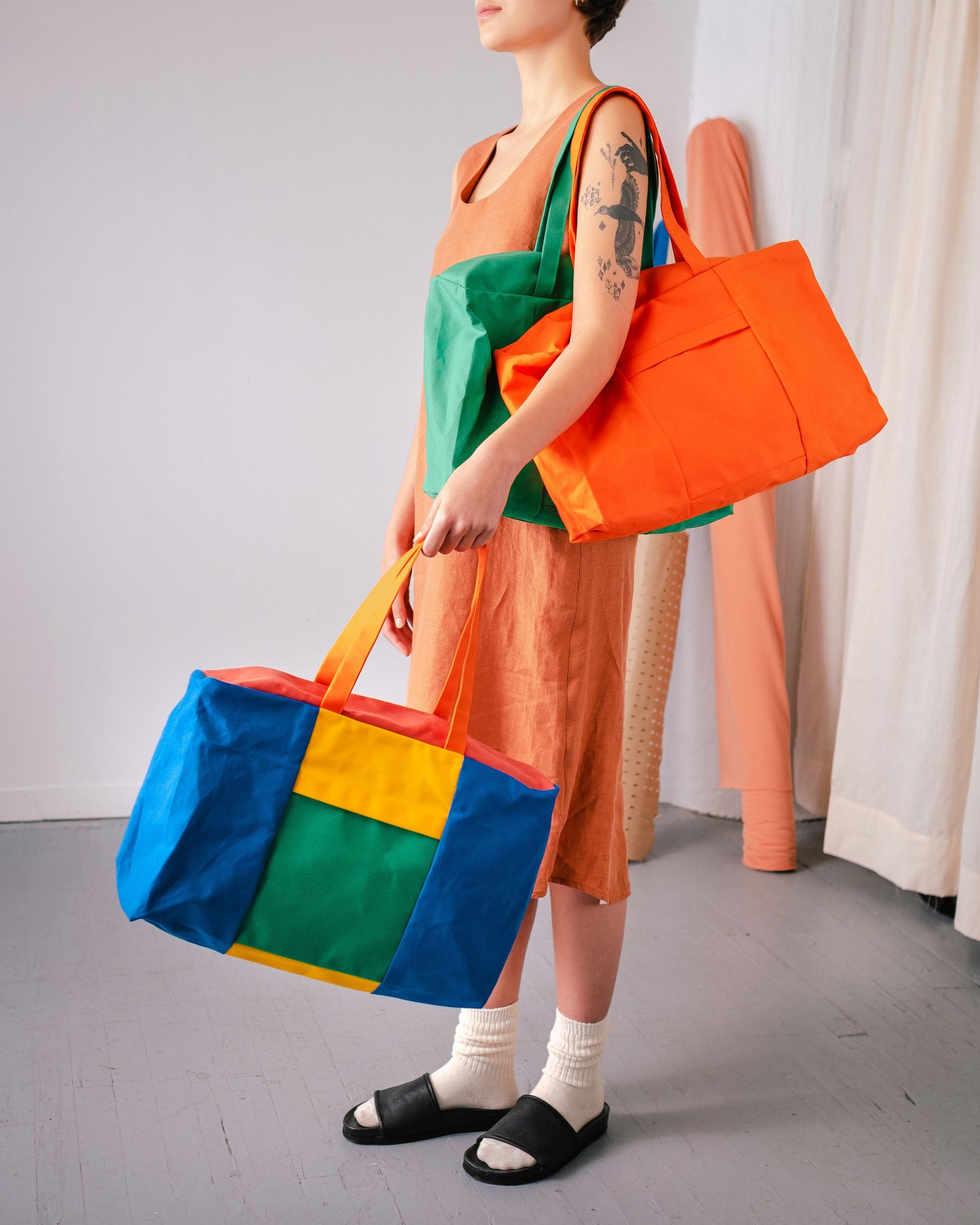 For the past 12 years, we've been experimenting and refining our processes to work with the best natural fibers available. We select our materials for their durability, comfort, aesthetic properties, and the conditions in which they were produced. We prioritize suppliers located near our workshop. Many of our jerseys and knits are made in Canada, while some woven fabrics come from the United States. For more specialized materials, we work with Japan and certain European countries (mainly Italy and northern countries). It is essential for us to ensure that workers' conditions are fair, and the best way to be sure is to choose countries that have a charter of individual rights that resembles ours!