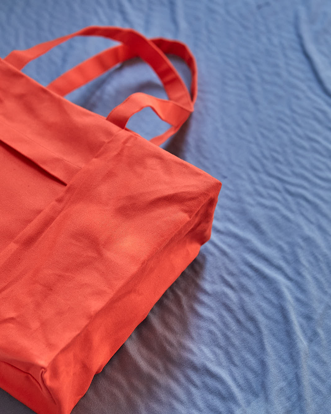 A colorful version of our box bag. A practical bag for your daily commute. With cotton lining, one inside pocket and cotton straps.